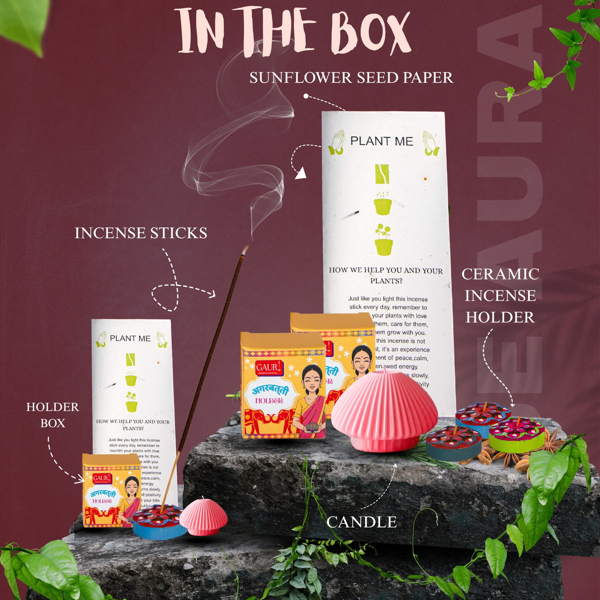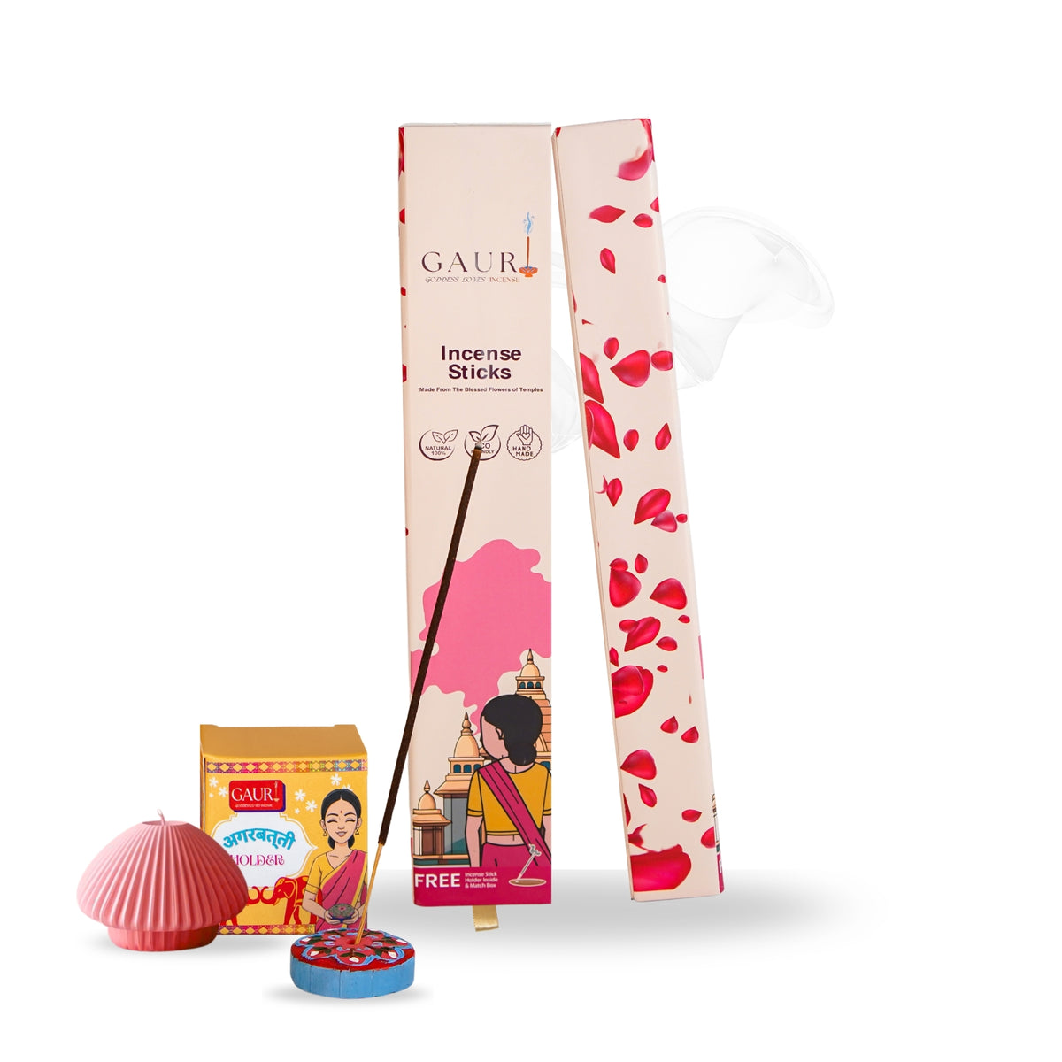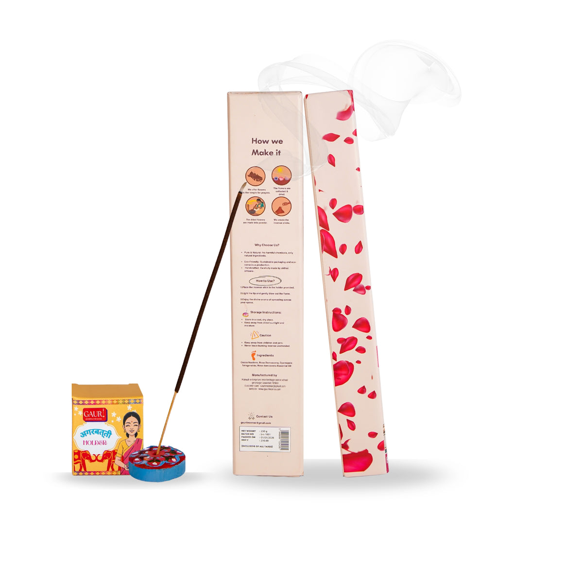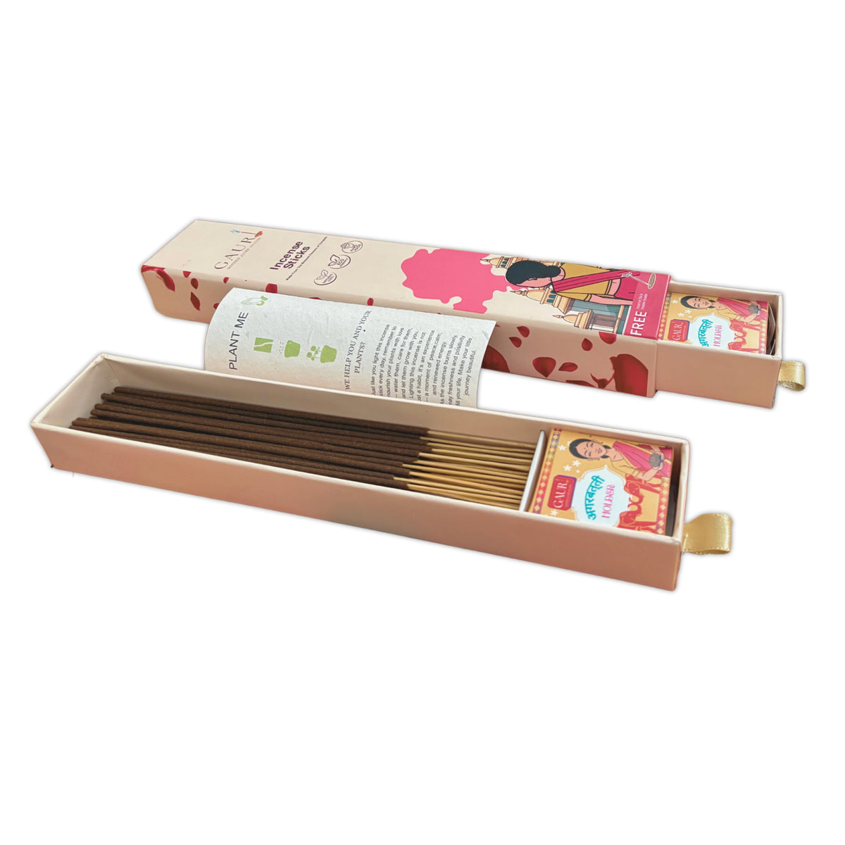 Bring purity and calm into your daily rituals with Gauri Rose Incense Sticks, crafted to create a peaceful and devotional atmosphere. Made using natural ingredients and infused with a gentle rose blossom fragrance, these incense sticks are ideal for pooja, meditation, yoga, and everyday relaxation. Each pack contains 50 premium incense sticks that burn evenly and release a soft, long-lasting floral aroma without being overpowering. The soothing rose fragrance helps create a serene environment for prayer rooms, temples, and spiritual spaces. This set also includes a beautifully designed ceramic incense holder for safe and convenient use. As a sustainable touch, the packaging includes plantable sunflower seed paper after use, simply plant it in soil and grow a beautiful flower. Gauri Rose Incense is perfect for home fragrance, gifting, festive occasions, and spiritual practices. A thoughtful blend of tradition, fragrance, and sustainability for modern homes